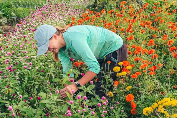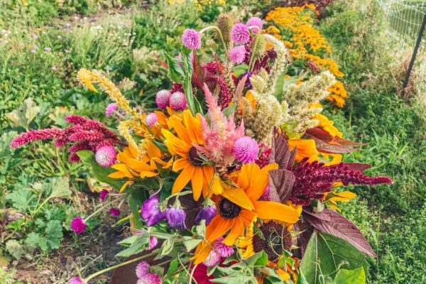 One of our big goals this year was to grow a larger variety of flowers than we have in the past. With Farmer Anne at the helm of our flower program, we’ve been able to successfully grow familiar favorites like marigolds and zinnias in addition to brand new varieties like gomphrena, rudbeckia, and sweet pea! Every week we have a limited number of bouquets available in the Grab-and-Go coolers in addition to our Saturday Farm Stand. We also have single stems of certain varieties available like sunflowers. Make sure to take advantage of these beautiful flowers while they’re available!
